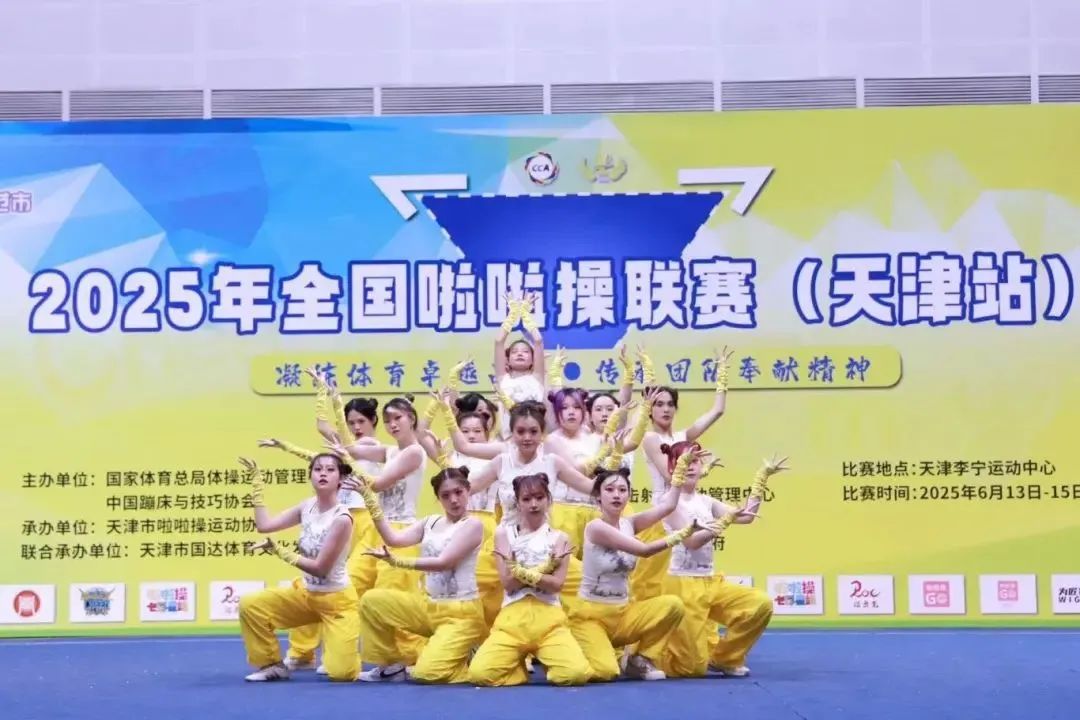 2025年全国啦啦操联赛(天津站)这一全国性大赛的舞台上,我校CC-Rainbow彩虹啦啦队的22名队员不畏强手,凭借精湛的技艺与默契的团队协作,最终斩获1项团体冠军、1项团体第四名和1项双人第六名的优异成绩。