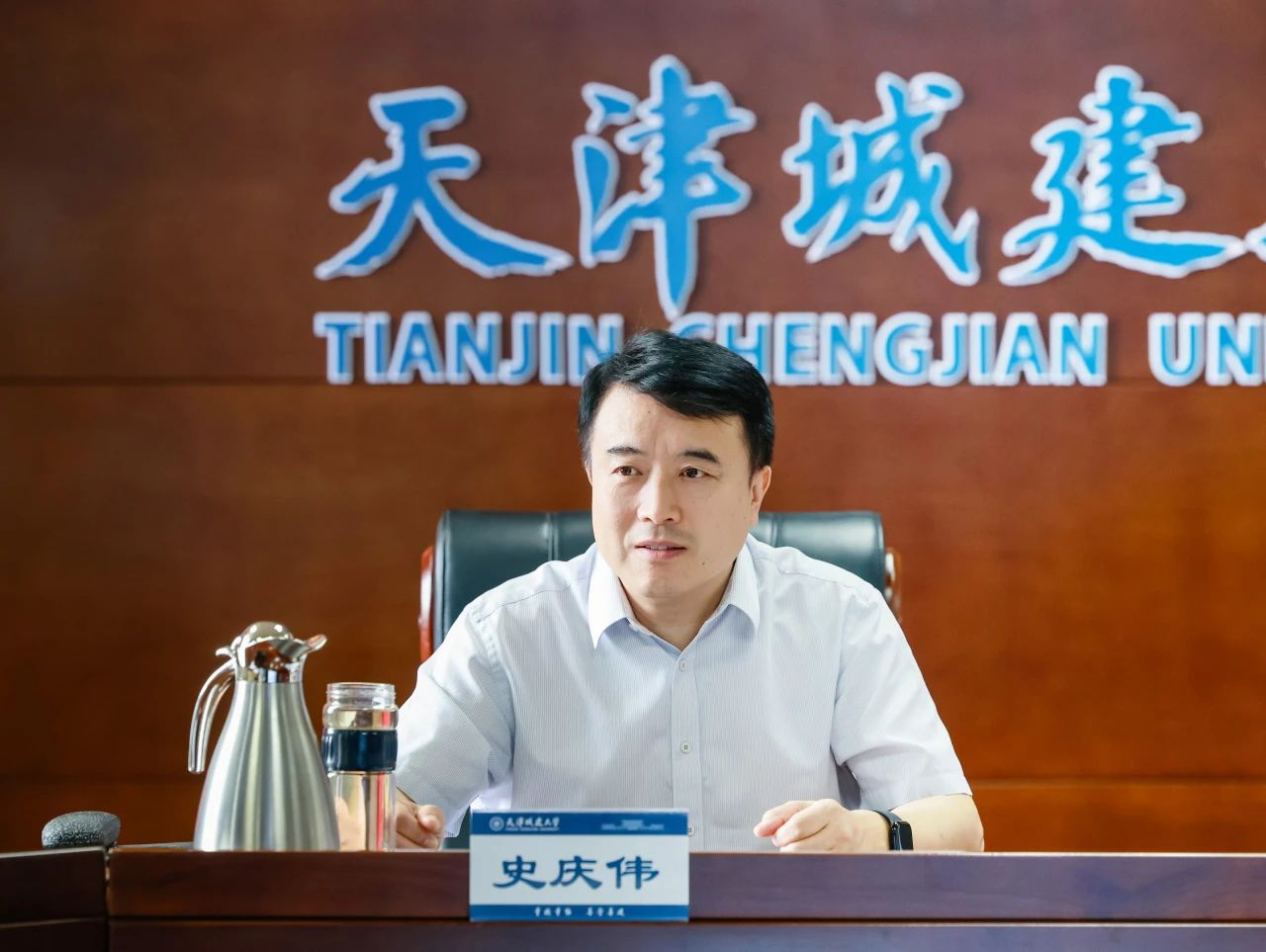 最后,史庆伟作总结讲话,他表示市领导深入我校就贯彻落实中央八项规定精神学习教育开展情况进行调研指导,对我校进一步深化学习教育、提升办学质量、推进高水平城建特色大学建设具有重要意义,并就扎实推进各项举措落地见效提出了三点要求: