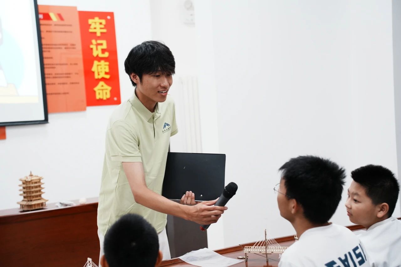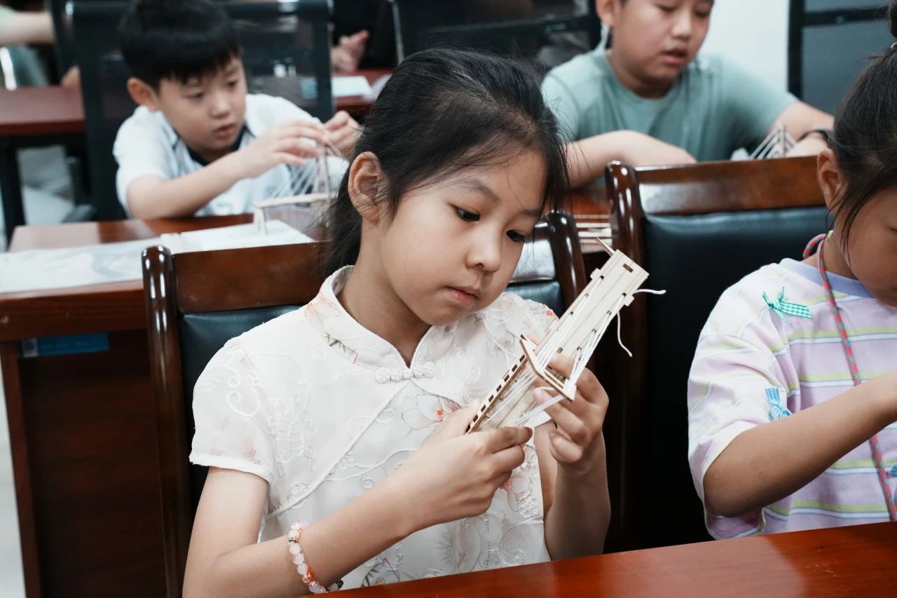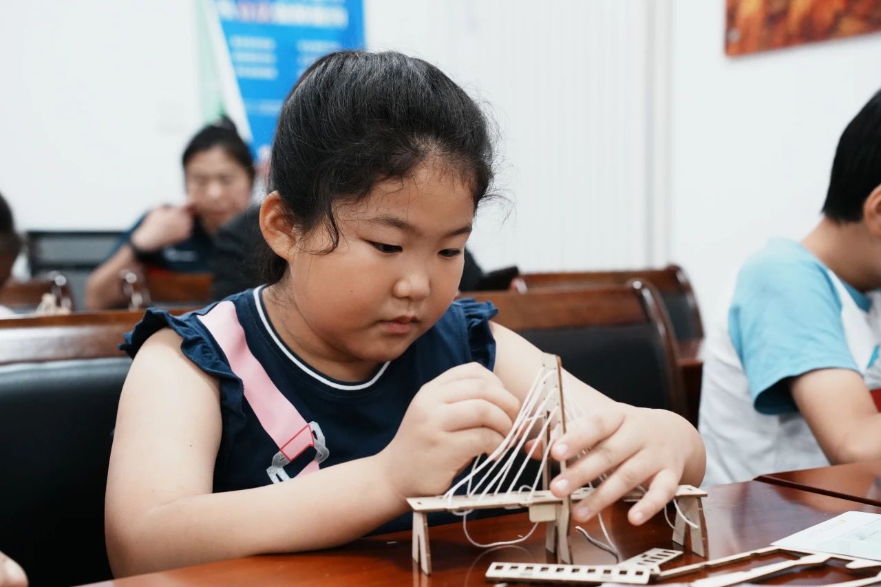 活动尾声,孩子们骄傲地举起亲手完成的斜拉桥模型,合影定格下这珍贵的瞬间。那些用木片精心构筑的索塔、看似摇晃却紧密协作的棉绳,不仅模拟了跨越河岸的物理桥梁,更在孩子们心中架起了一座坚实的认知之桥——一座连接当下实践与未来视野、沟通家乡情怀与广阔世界的桥梁。今日聆听外交故事的小小听众,或许明日就是驰骋国际舞台的外交官;此刻专注拉紧绳索的“小小工程师”,未来也许能设计出联通世界的超级工程。这颗在童心中播下的开放包容的种子,终将在世界舞台上绽放耀眼的津门华彩。正如“智建津彩”实践团的宣言所期许的那样,“让世界从天津读懂中国,让中国从童年看见世界。”