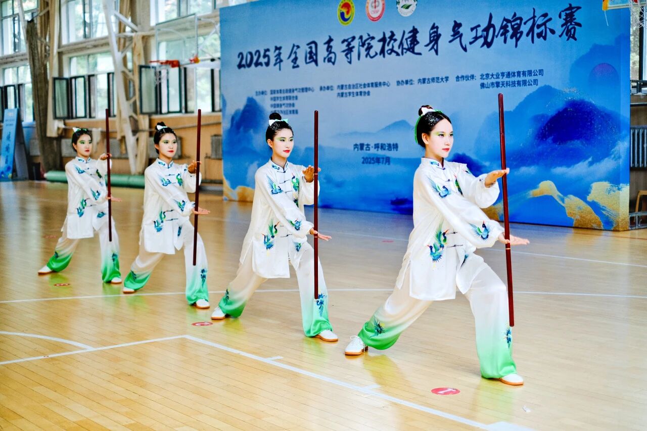 近日,全国高等院校健身气功锦标赛在内蒙古自治区呼和浩特市内蒙古师范大学赛罕校区举行。本届赛事人数规模创历史新高,共有来自全国29个省市区、300余支高校代表队的千余名选手参赛。我校健身气功队表现出色,荣获集体赛一等奖2项、个人赛一等奖2项、二等奖3项,教工组个人赛一等奖1项。