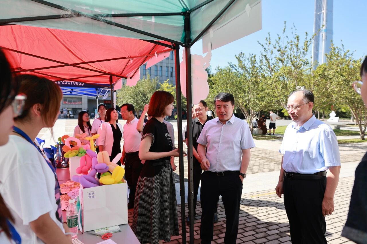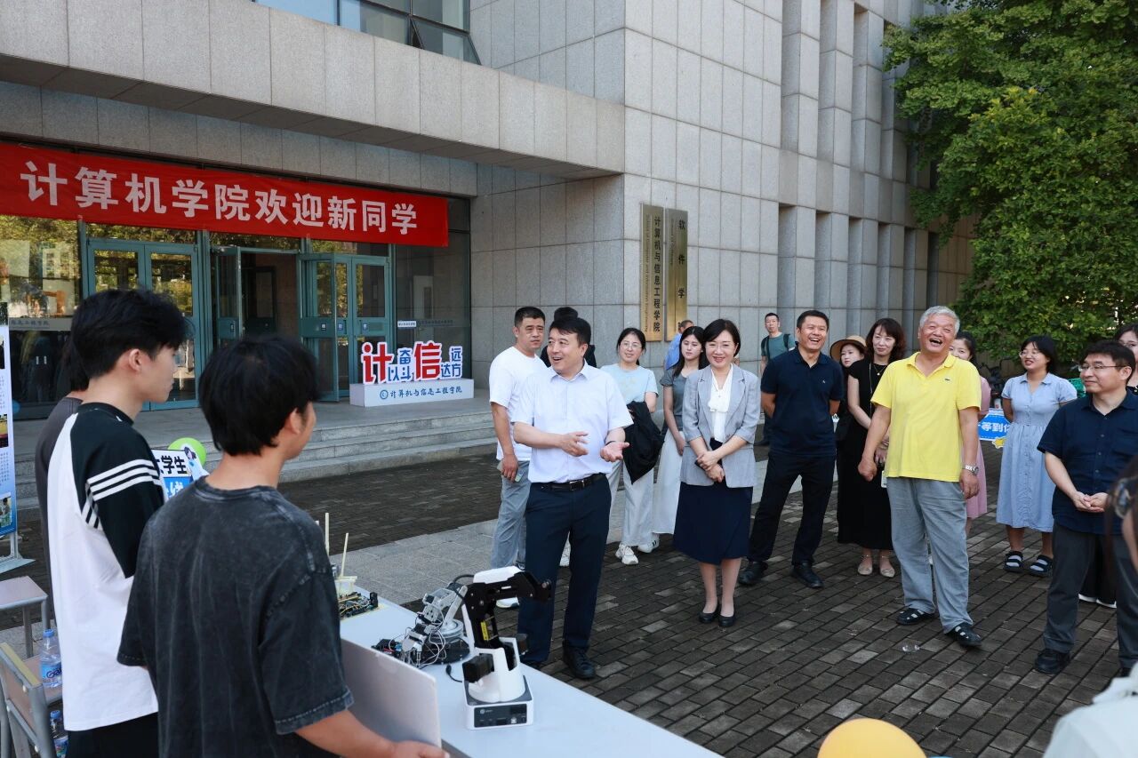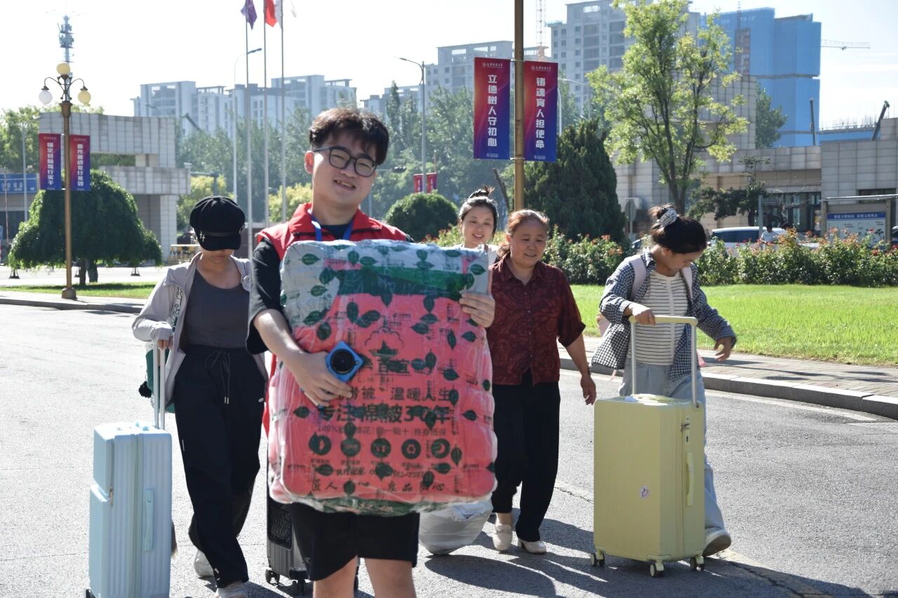 校党委书记史庆伟、校长王中良、党委副书记王罡,副校长阎兵、陈志华、杨静深入迎新现场,亲切看望新生及家长,慰问奔波在迎新一线的师生员工。