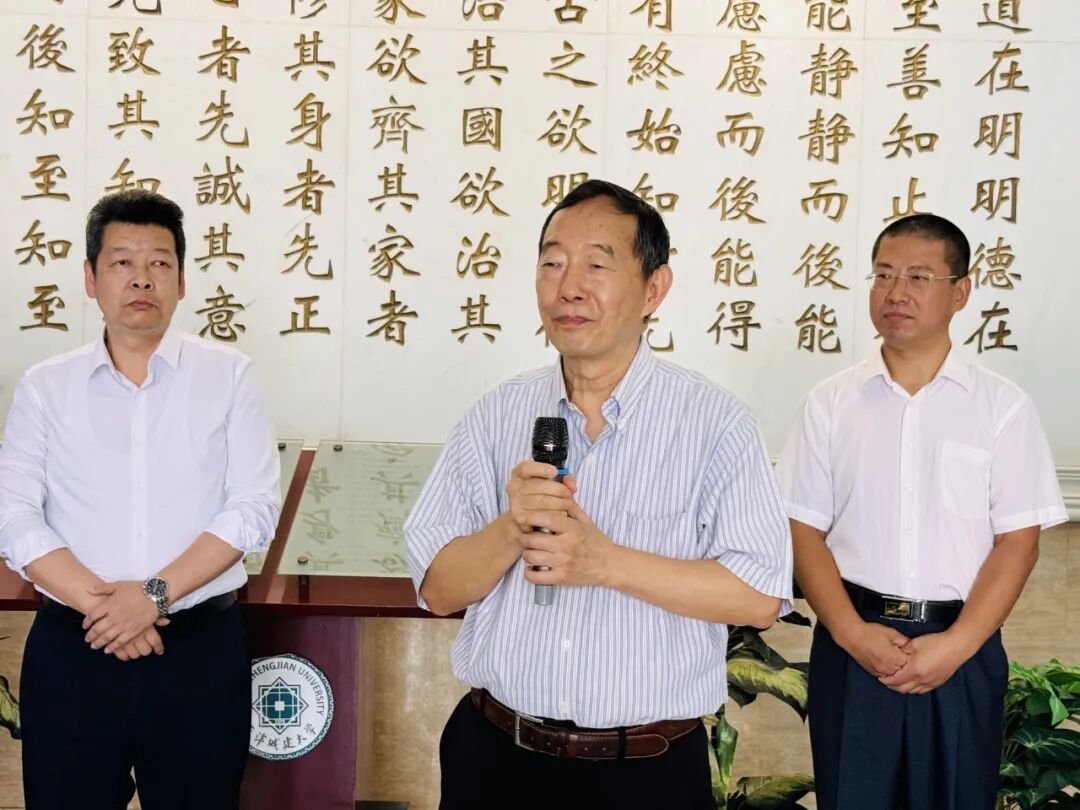阎兵代表学校向杨洪兴教授的慷慨捐赠致以衷心感谢与诚挚敬意,他表示此次捐赠不仅是厚重的学术礼物,更是深刻的学术精神传承,充分彰显了杨教授心系教育、乐于分享的学者风范。阎兵还对我校图书馆教职工在积极推进落实文献资源建设、学术服务创新、空间资源整合利用等工作方面的努力和付出给予肯定。并对此次捐赠专著的价值与后续利用提出要求,希望相关学科教师充分利用资源,将先进理念与研究成果融入教学科研,鼓励同学们研读专著,提升专业能力与创新思维,希望图书馆以此次捐赠为契机,进一步优化资源整合,创新服务模式,加强文献保护与传播,让学术瑰宝发挥最大价值。