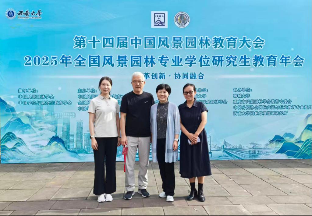 同时,我校建筑学院风景园林系李鹏波、吴军、霍艳虹、魏冬雪四位教师还参加了第十四届中国风景园林教育大会暨2025年全国风景园林专业学位研究生教育年会的系列会议。其中,魏冬雪老师在“分论坛3:产教融合论坛”中,代表我校建筑学院工程实践中心与风景园林系以“垂直整合·水平协同:多专业联合毕业设计实践探索”为题作报告。魏冬雪针对传统教学与真实需求脱节的问题,提出“垂直整合”(本硕贯通)与“水平协同”(跨专业融合)的双轨教学改革路径,并以“大运河和美乡村”毕设为例,阐述该路径如何促进“产教融合”与“赛教互促”,最后还结合学生反馈,展望风景园林教育新生态。