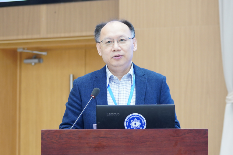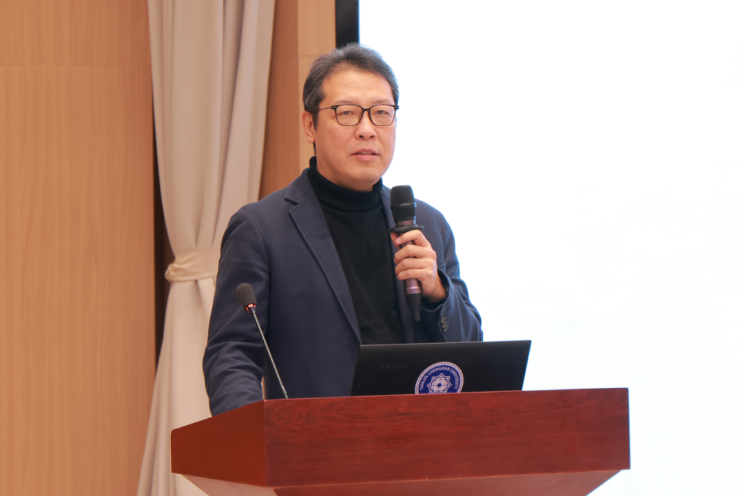 主旨报告环节由我校建筑学院院长汪江华主持。李霆作题为《智能建造重塑建筑业新生态》的报告,表示未来五年需推动重体力劳动向机器作业转型,通过标准化降低成本,推动行业从“功能房”向“智能房”跨越,重塑科技密集型新生态。