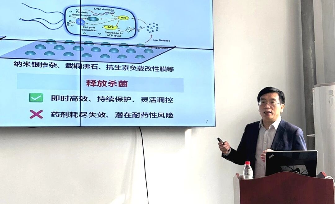 王志伟作题为《污水处理抗生素污染膜材料研制及性能研究》的报告,核心聚焦污水处理膜技术领域关键挑战-生物污染问题。报告指出,在环境功能质量提升需求驱动下,膜法污水处理技术发展迅速,工程应用规模快速增加,在新型膜材料研制、前沿膜技术研究和高效低耗膜工艺开发及应用等方面取得了长足进步。在绿色低碳要求下实现膜法污水处理的理论与技术创新,持续推进膜法污水处理系统数字化、智慧化运维,对于支撑“双碳”背景下膜法污水处理技术的可持续发展具有重要意义。