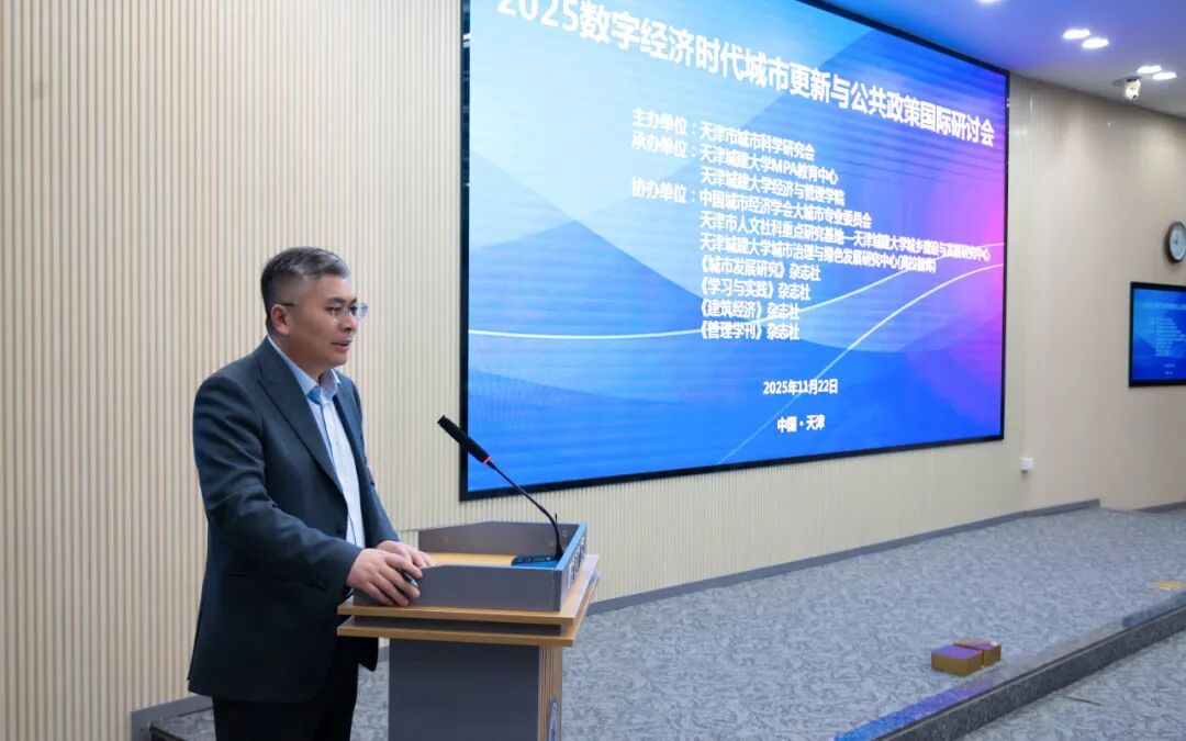 天津社会科学院副院长蔡玉胜研究员以《“十五五”时期城市经济发展的新逻辑与发展城市文化经济》为题,阐释“为什么要做”的核心逻辑,点明城市更新的时代必然与文化经济价值。南开大学英才教授、博士生导师江曼琦以《人民城市理念下的老旧小区更新:从“政府主导”到“自主参与”的转型路径与政策创新》为题,拆解“要怎么做”的实践路径。南开大学公共管理(MPA)教育中心主任翟磊教授的《从规制到赋能:城市公共数据流量的治理逻辑》,华盛顿州立大学严佳教授的《Leveraging Multiple Data Sources and Modern Analytical Tools for Urban Policy Design》,天津商业大学经济学院院长梁学平教授的《数字经济时代新质生产力赋能城市更新》,建筑经济杂志社社长、总编易冰源研究员的《城市更新:产业发展与数字赋能》共同搭建“靠什么做”的支撑体系,分别从公共数据治理、多源数据分析工具、新质生产力、产业与数字赋能等维度提供核心动力与方法论。波兰克拉科夫工业大学Jakub Błachut助理教授的《Analysis of the possibility of adapting solutions that improve the quality of services for disabled and elderly people at large airports in order to improve the development of modern public spaces in cities》《城市发展研究》副主编王亚男研究员的《新兴向荣,融容与共——城市更新政策与实践的新锚点》、威客电竞经济与管理学院院长王振坡教授的《整合创新要素,高质量开展城市更新》则聚焦现代公共空间优化、政策实践协同、创新要素整合下的高质量发展与民生改善,勾勒“最终做到什么”的目标图景。
