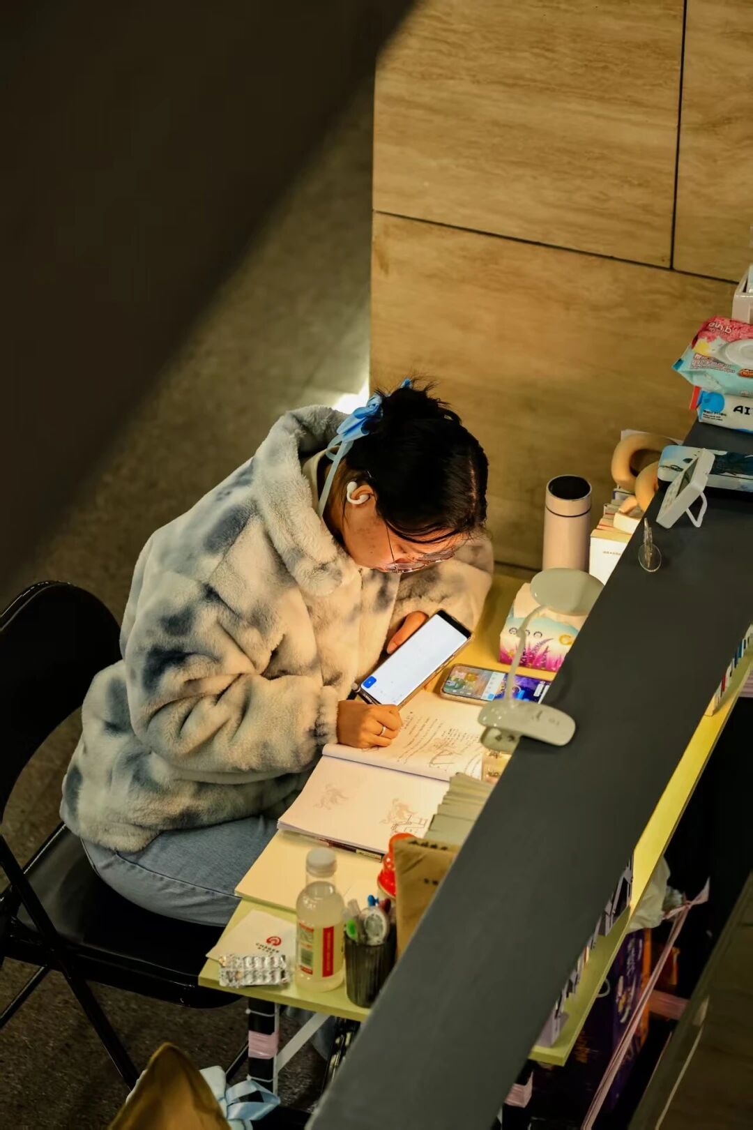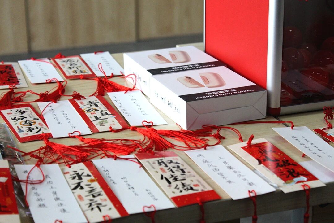 建筑学院将祝福融入实用好礼之中。暖手宝寓意“研”途温心,“连中三元”文具套装寄托下笔从容、金榜题名的期许,蒸汽眼罩助力学子明眸亮眼、思如泉涌。每一份伴手礼都搭配手写祝福书签,一字一句,皆是对学子落笔生花的殷殷期盼与美好祝福。